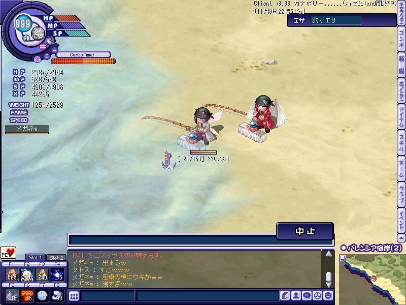 SS見て分かるように、僕も釣られてますね(笑) というか・・・・あの位置で釣りスキル発動できるんですね、すげぇ!!